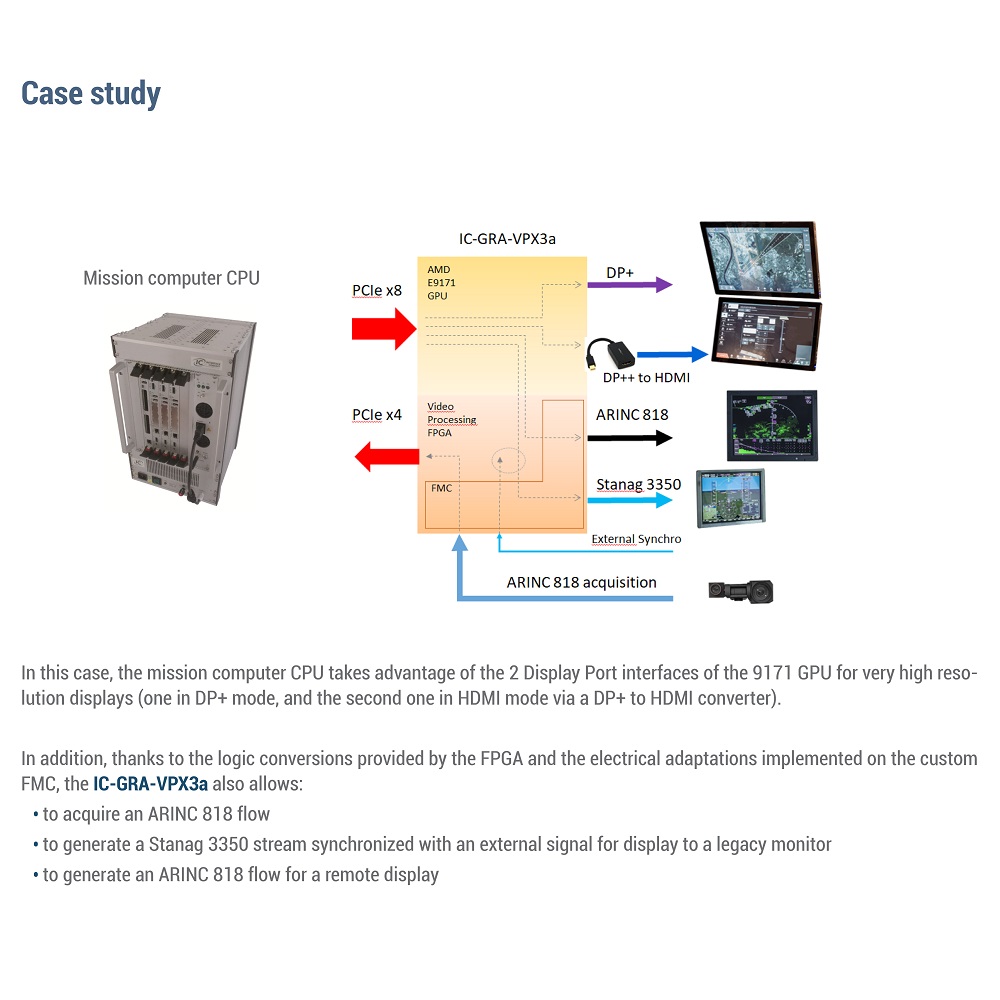 - One PCIe x8 Gen3 lane to/from GPU and one PCIe x4 Gen3 lane to/from FPGA via VPX P1 connector